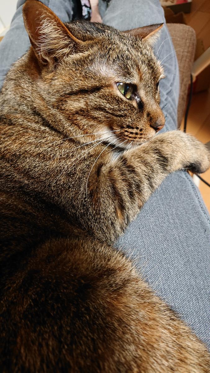 病院で「連れて来るときこの子が一番暴れました~」って言ったら警戒した先生に1匹だけおちりにチックンされたりんちゃん。(げんあんは首でした)
