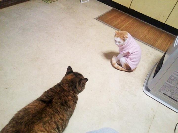 コウメ「服脱げなかったにゃる」
