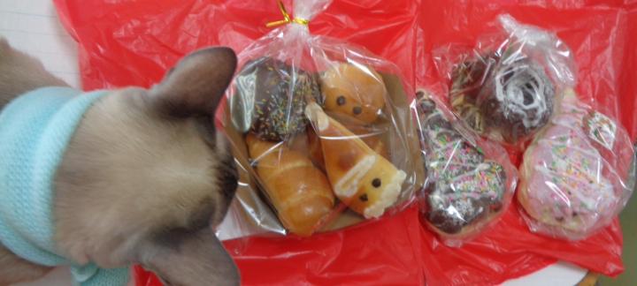 ポニョ😻「へ~え、これを今 となりに あげてきたのかあ。。クリスマスじゃないパンの方が多いんだね!」