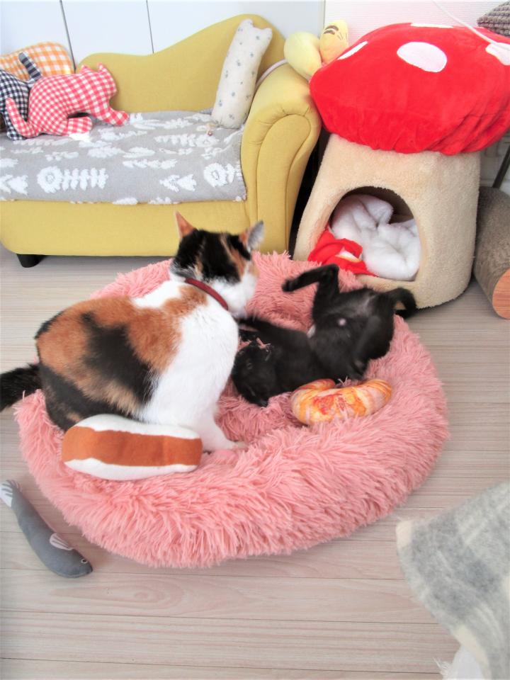 ベッドも使ってもらえるし、みんにゃも大コーフンだろうし、一石二鳥!?