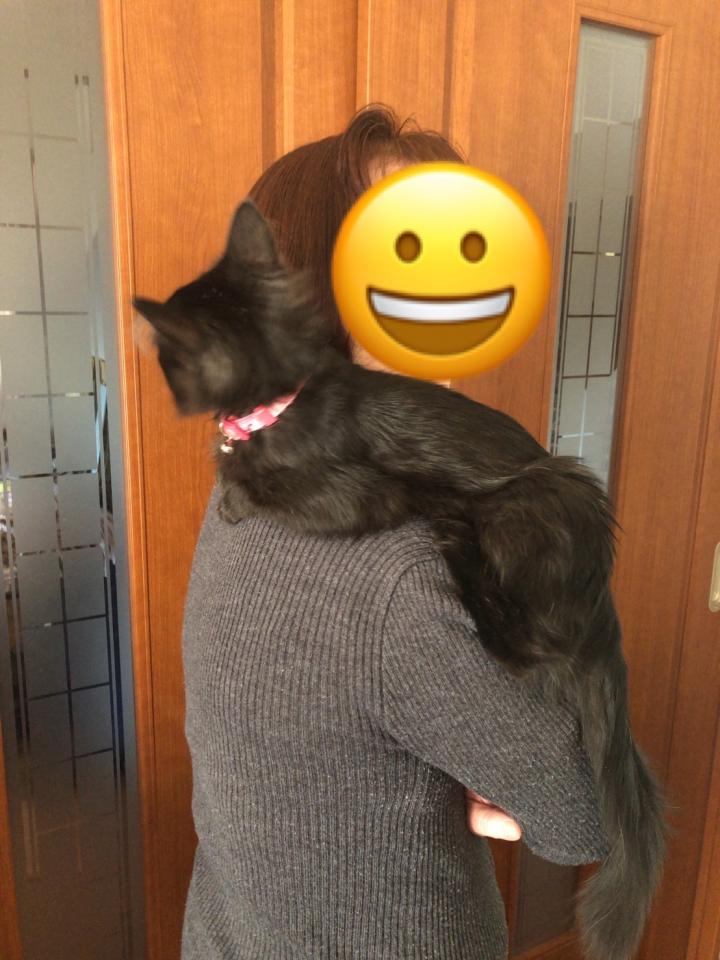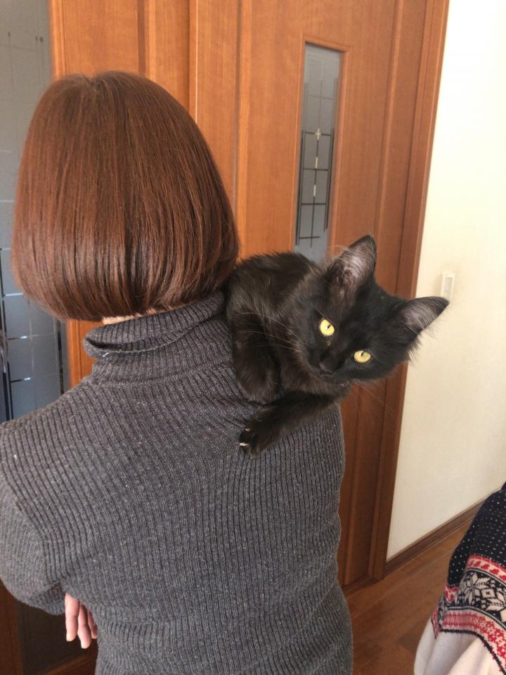 ハチちゃんが落ちないように、身体を傾け手を添えて笑