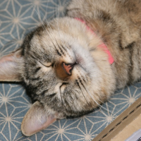 玄関で「開けろー!」ってなくから入れたら、お布団に入ってきた、だって。
