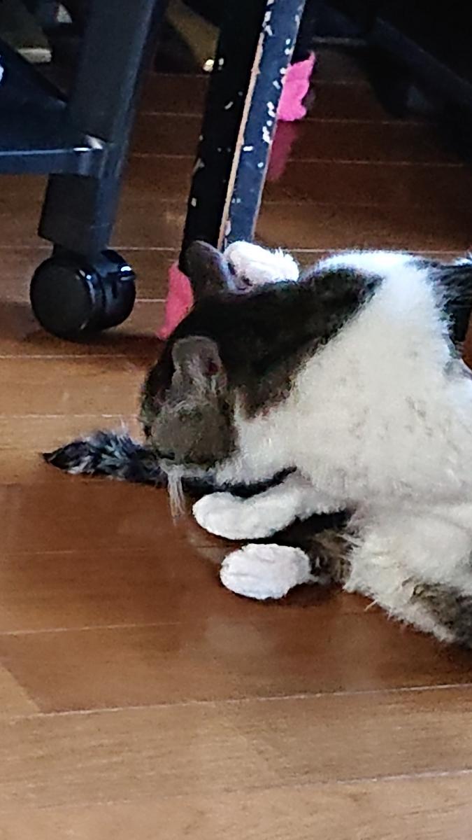 出た途端に体中ペロペロして一生懸命痕跡を消そうとするリンちゃんでした。