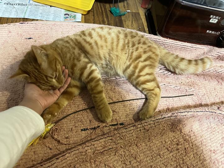 キジトラ君はシャイで慎重派ですが、撫でさせてくれて、気持ちよさそうに目を細め、コロコロしてくれるようになりました。