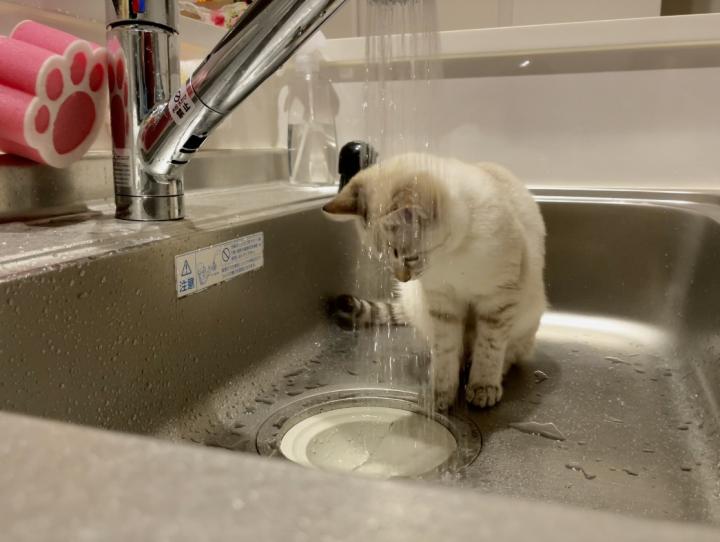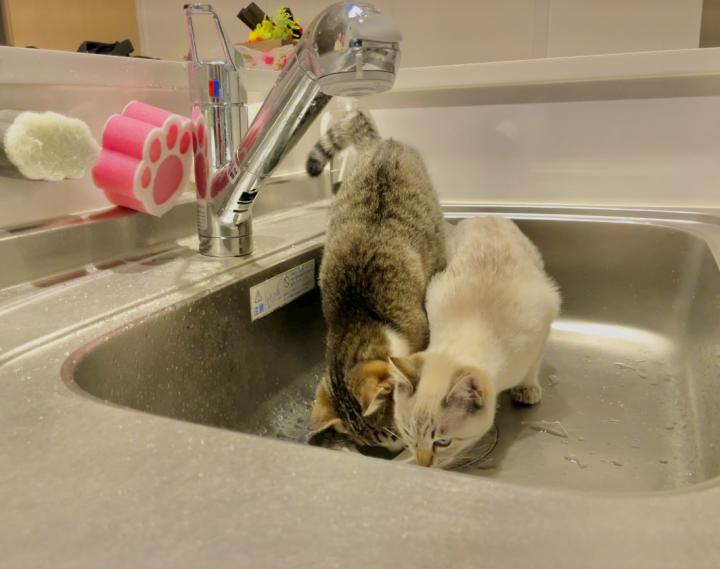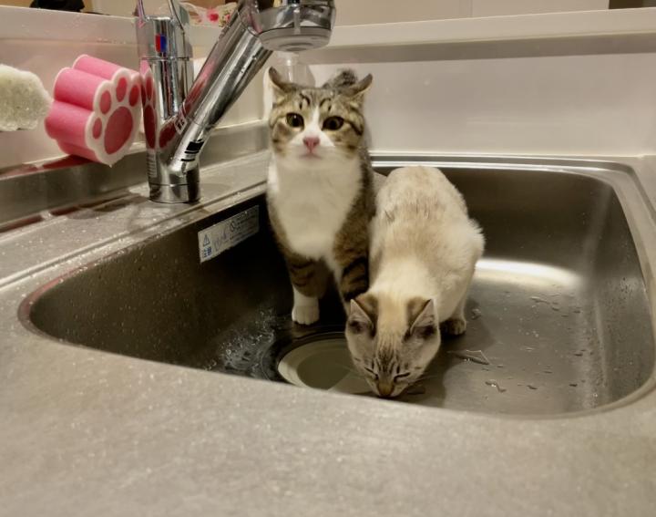 用意してある水より水道の水が好きみたいです💦