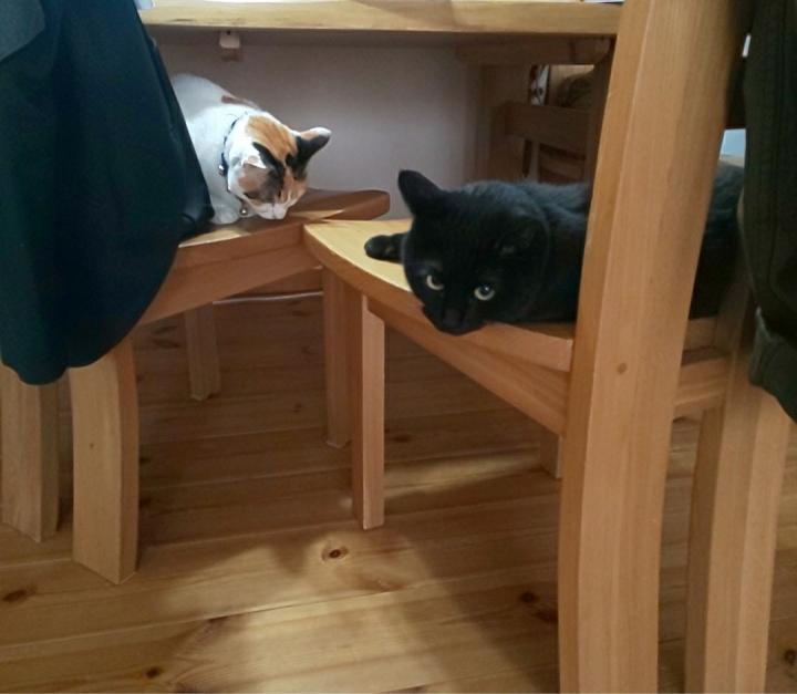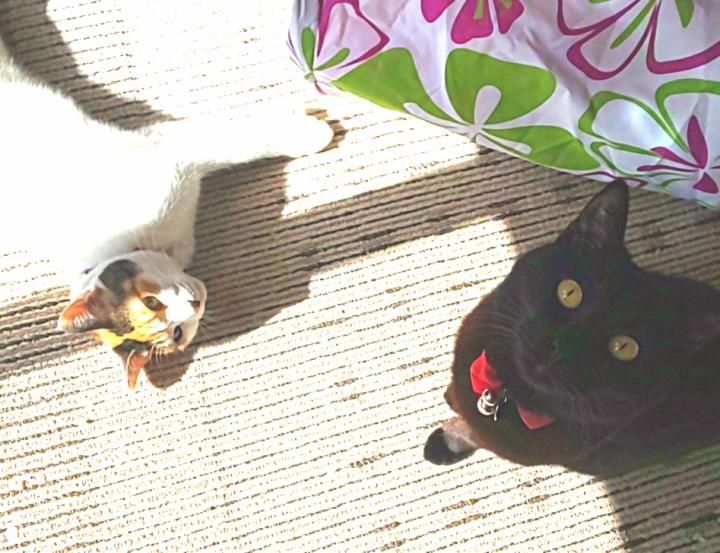 ジジは楽しそうですが、三毛ちゃんは、ウザイと思っているだろうな~😁