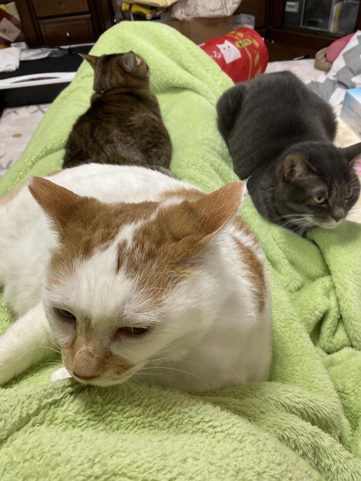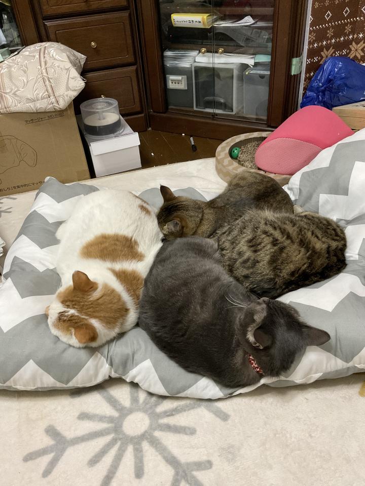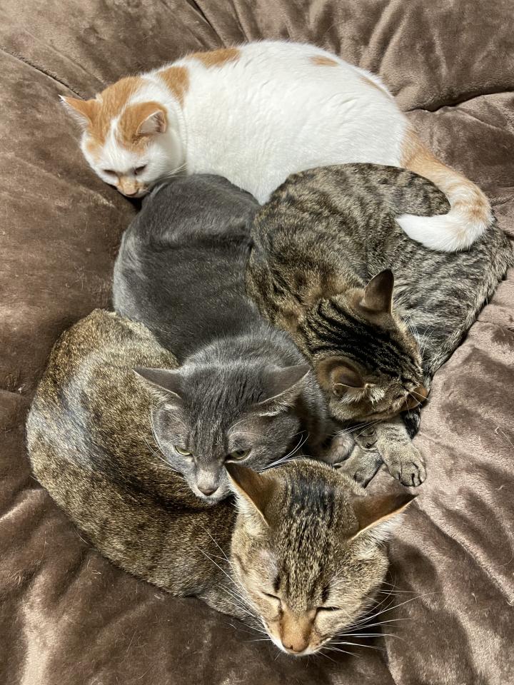 昨晩、お風呂からあがったって寝室に行くと、また4猫団子❣️