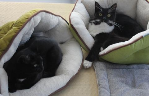 夜は猫ベッドで、昼は人間ベッドで寝ています。(って寝てばっかり・・・)