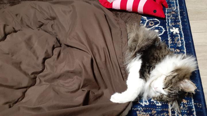 横で寝てたけど、寒そうだったので荒れた布団をかけました( 〃▽〃)