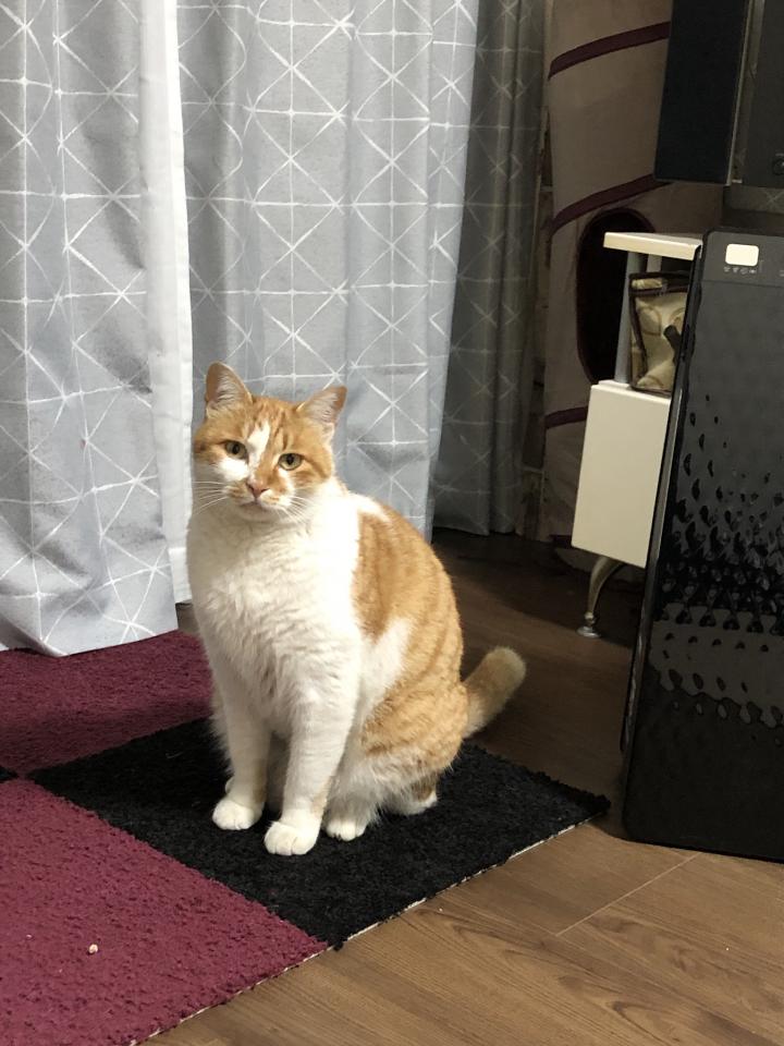 外の散歩から帰ってくると、必ず家にいる猫に頭突きをしながら皆に挨拶をします(笑)