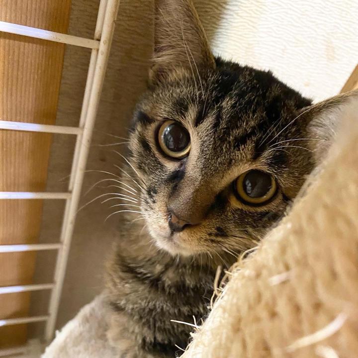すごくビビりさんなので譲渡会では緊張しすぎてお顔がしかめっ面💦