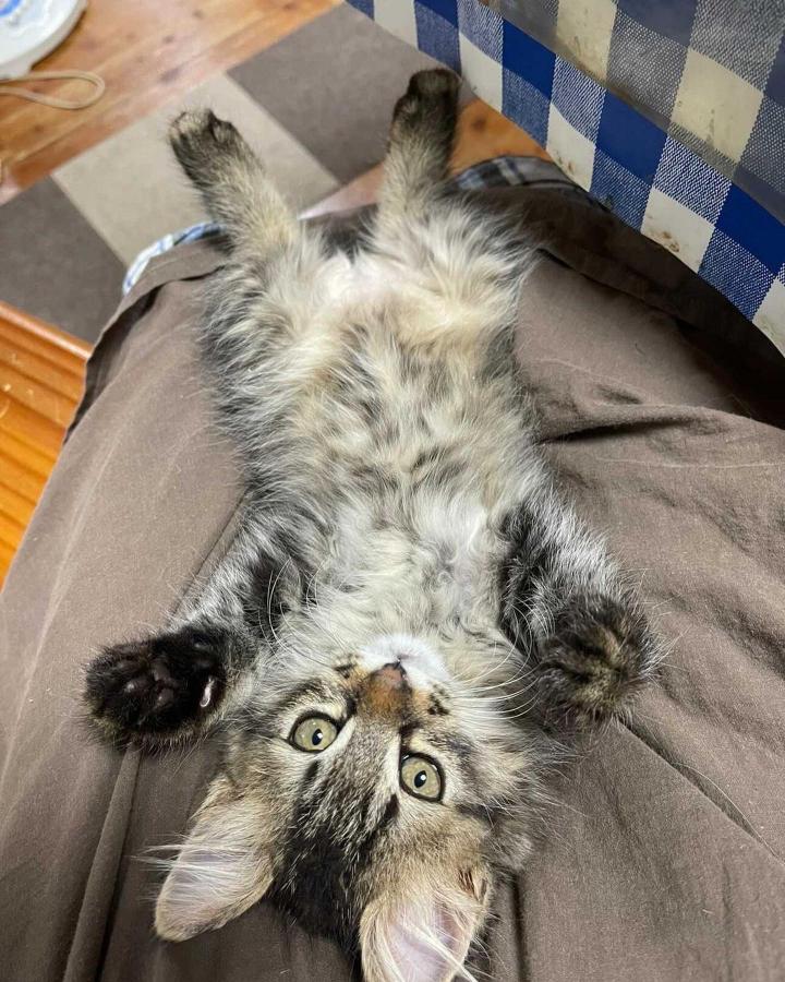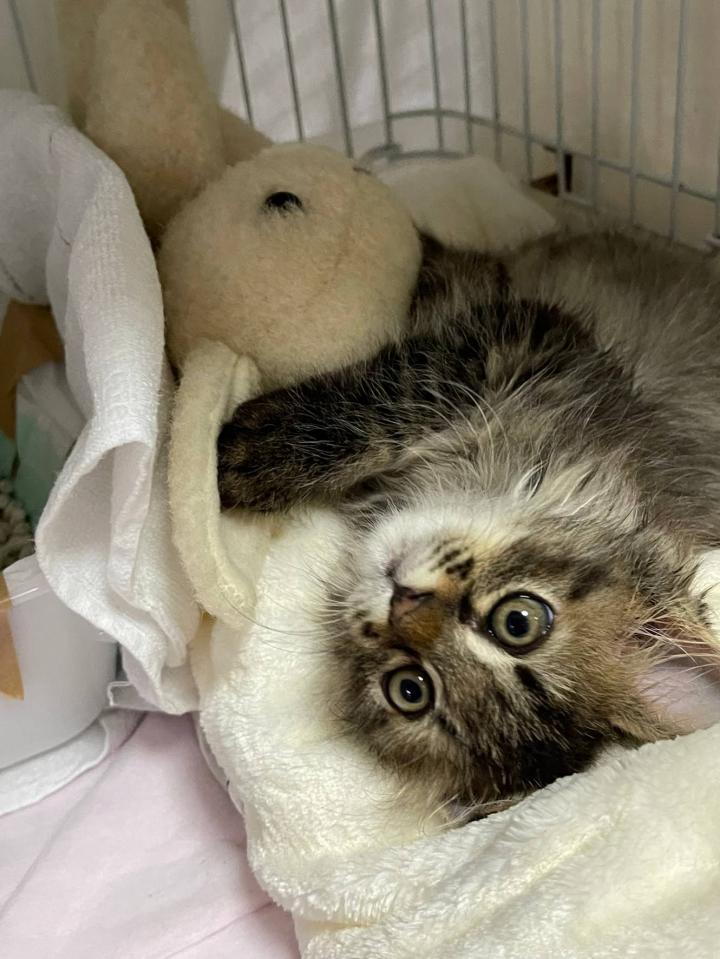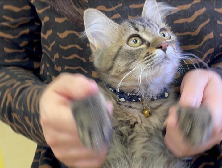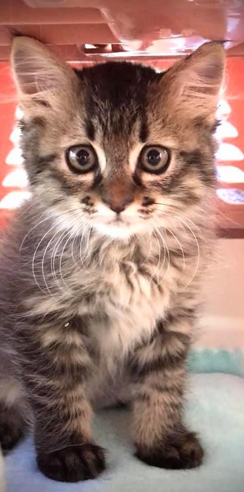 茶トラふわふわな男の子。ちょっとこわがりさん、小さなお顔も可愛い!