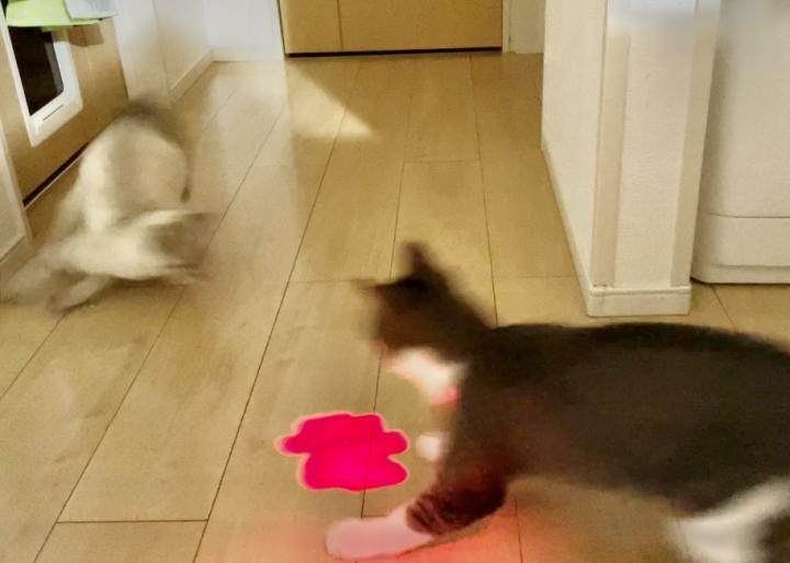 新しいおもちゃレーザーポイントで遊んでみたらベルが気に入ってくれたみたいです😊