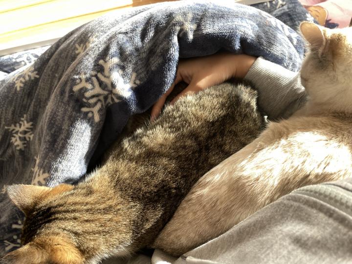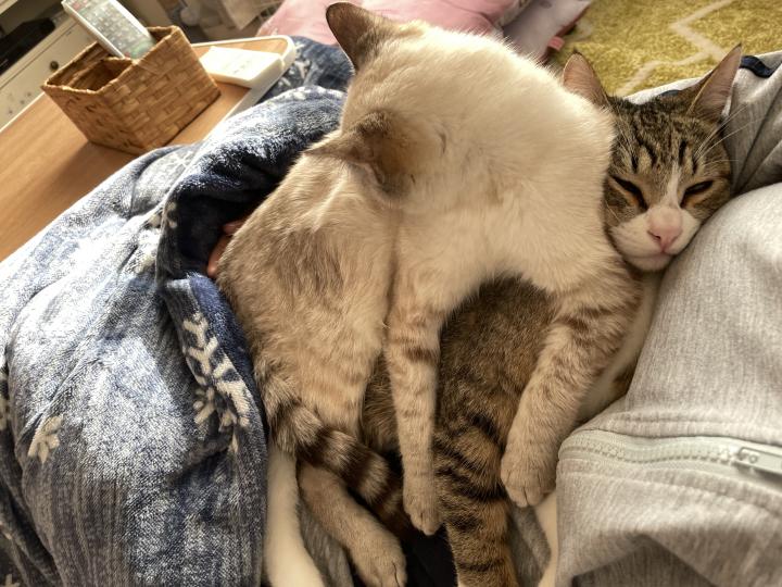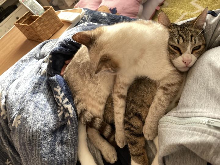 猫タワーになってるけど😅ボーは苦しくないのかな💦