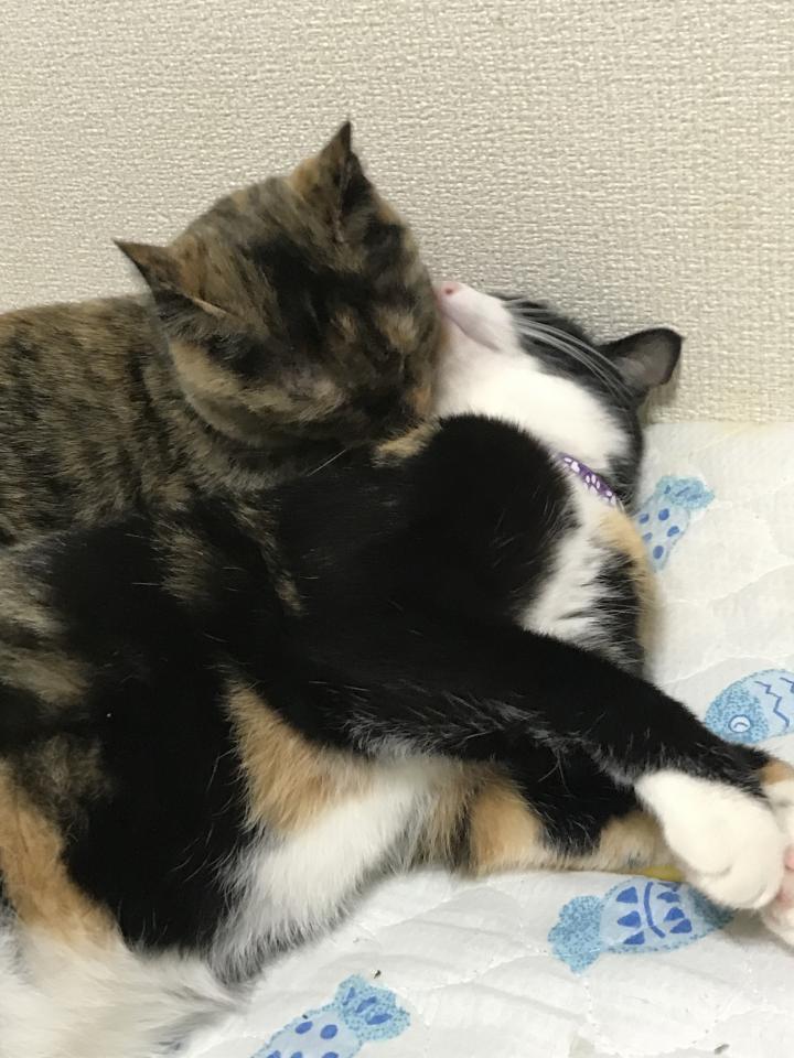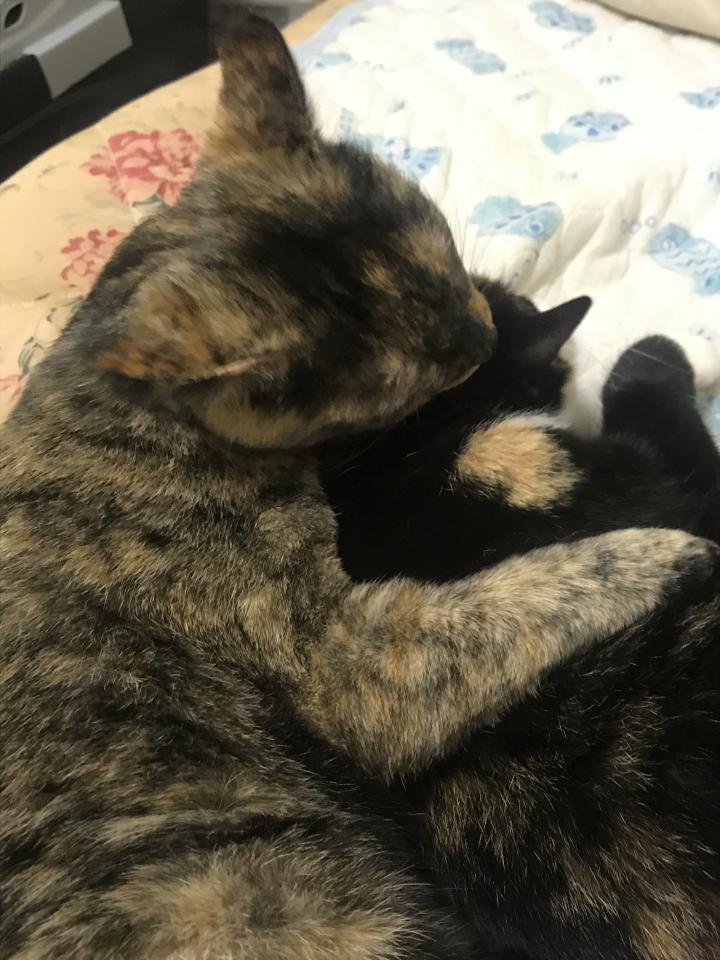 姉妹同士は隔離してません。お外にいた時からグルーミングはしあってたので。