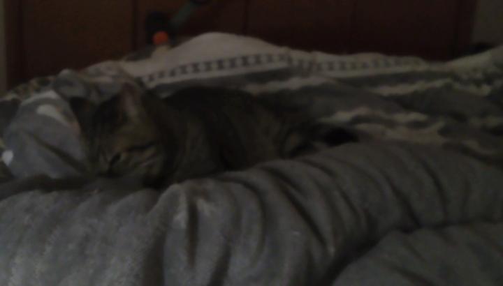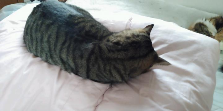 と「ねこのきもち」にあった気がするが(うろ覚え)、きなこ嬢の場合は灯りを落とした布団の上でもごめん寝をしている姿をよく見かける。