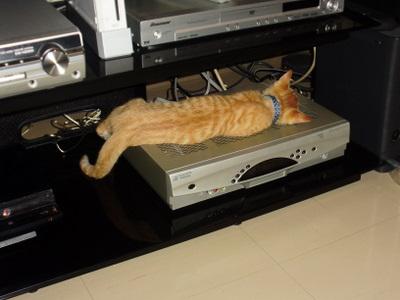 下の写真は、暑いのに暖かい場所が好きなようでテレビの