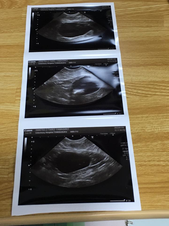 タロちゃんを触診して膀胱におしっこは溜まっていないという。