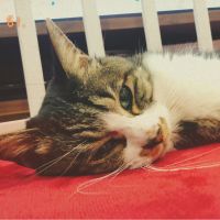 飼い主が湿布を貼っているとすかさず近寄ってきてゴロゴロ、クンクン…湿布が大好き過ぎて咥えて自分の巣に持ち帰ってしまいます😑