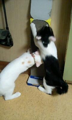 お互いが譲らず、喧嘩に。思わず爪とぎの人気に嫉妬。