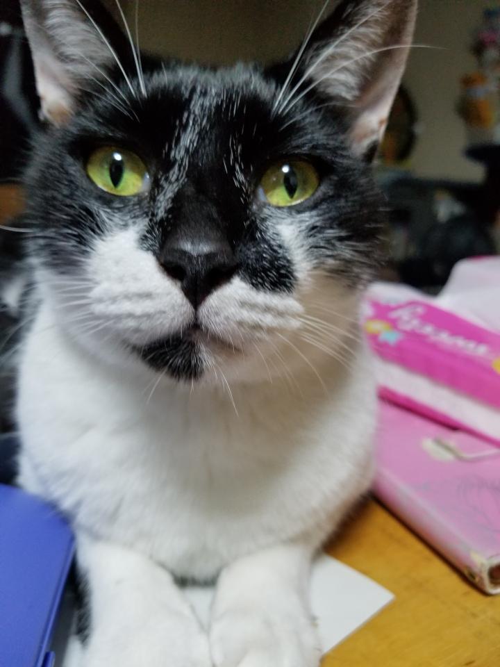 スマホのアルバムを見てたら我が家の白黒猫のおはぎが[タイ猫]に分類されてた(笑)