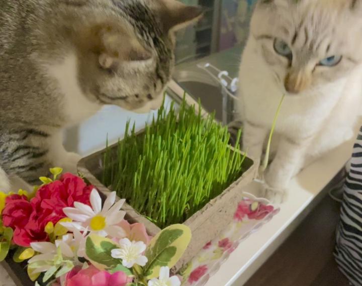 猫草もボーは食べていてベルは引っこ抜いて遊んでいました😊