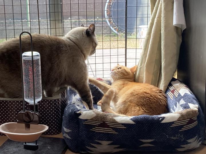 何か感じるものがあるのか、ユキが茶々にくっついて回っています。