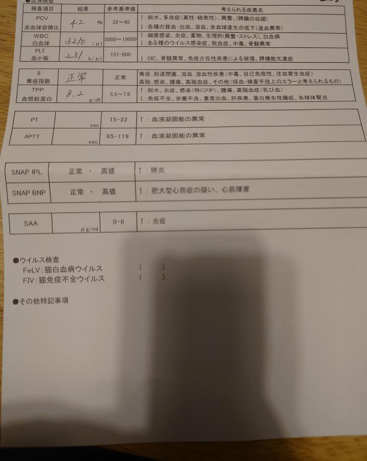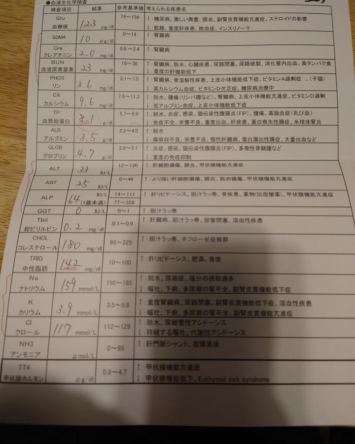 血液検査、SDMA(これ自体は3500円くらい)、エコー、尿検査、フルコースを受けてみました。