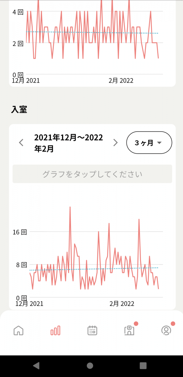 一番出っ張ってる所が22回、上のグラフはおしっこの回数。