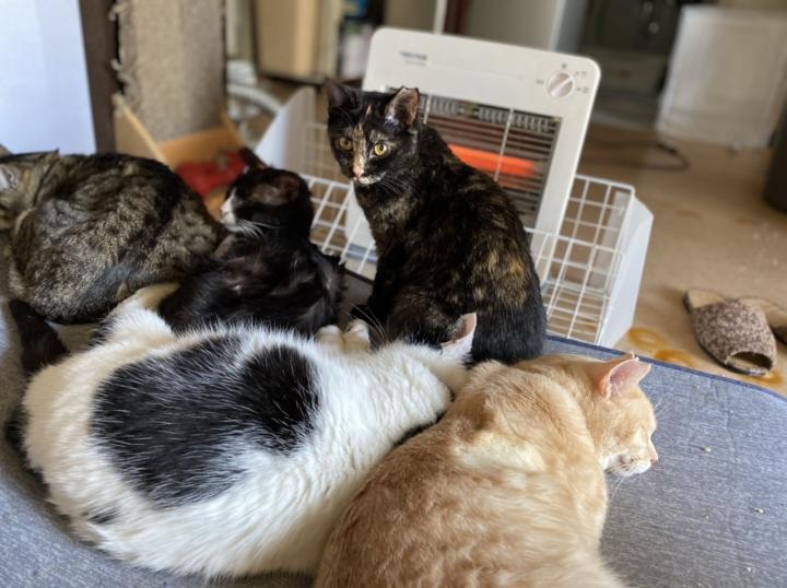 昼間もこんな感じでストーブと電気マットのぬくぬく仕様でまったり。