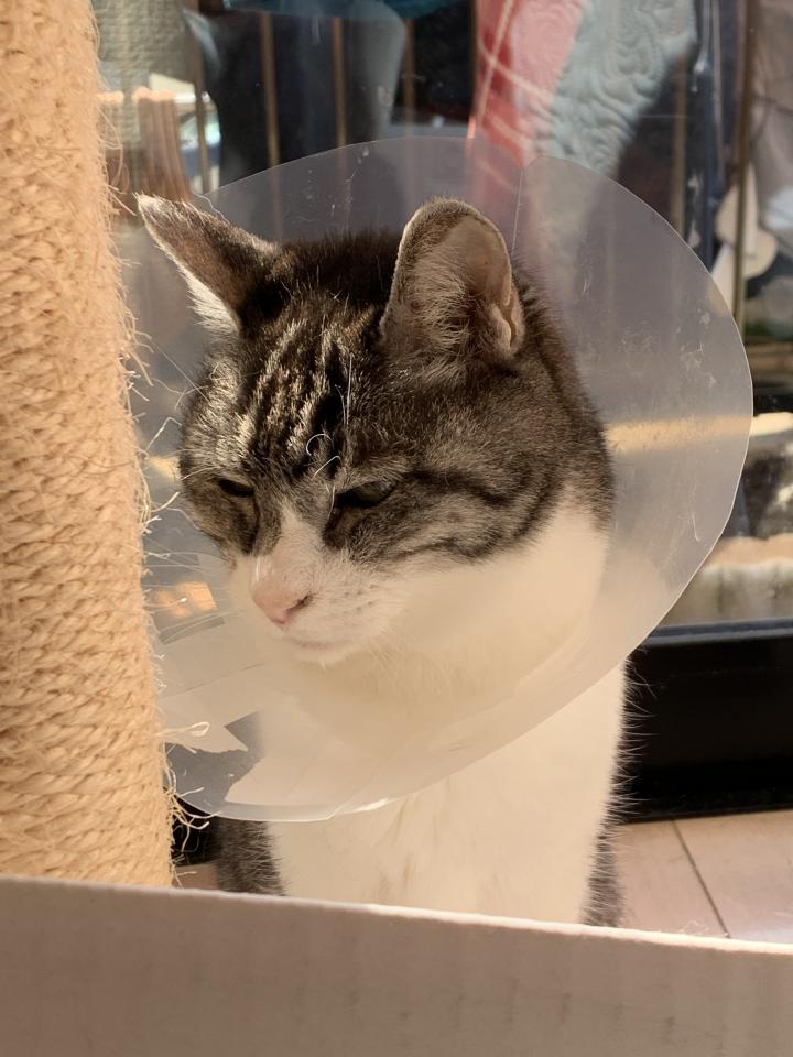 治ってきたようで舐めることも無くなってきたので、カラーを取ってあげました