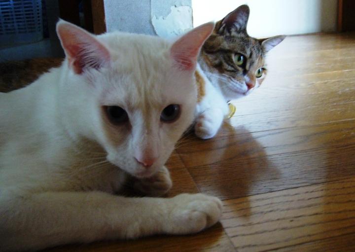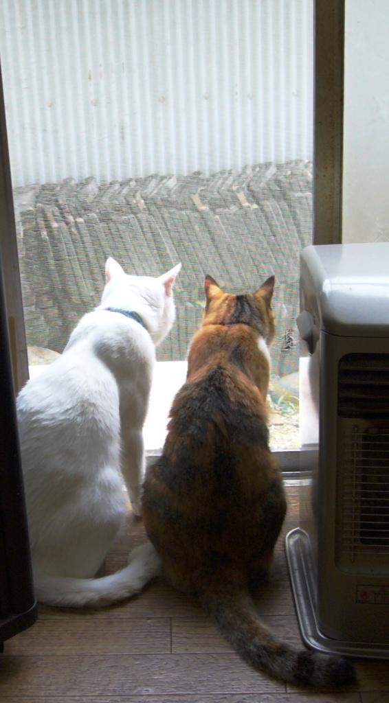仲良く並んで外を見ながら相談でもしてるのかな?