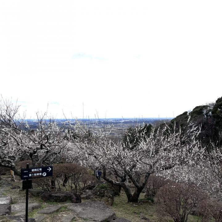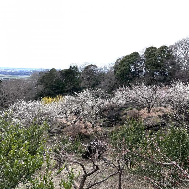 広大な梅園と、遠景には更に広大な