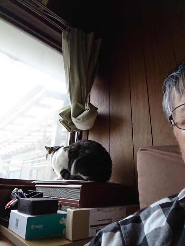 ノラネコのクロちゃんやヒヨドリが窓の外を行き来するので2つの見張り台を飛び回って監視している。