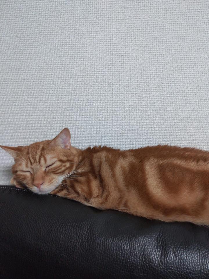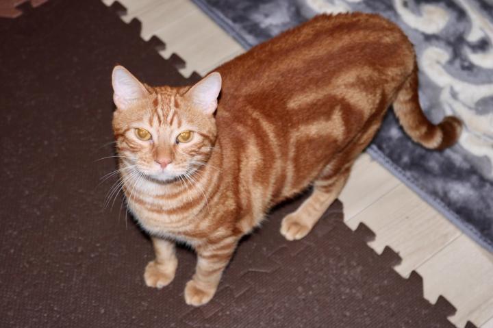 名前はジェイクくんで2歳のアメリカンショートヘアです。首輪はしていません。