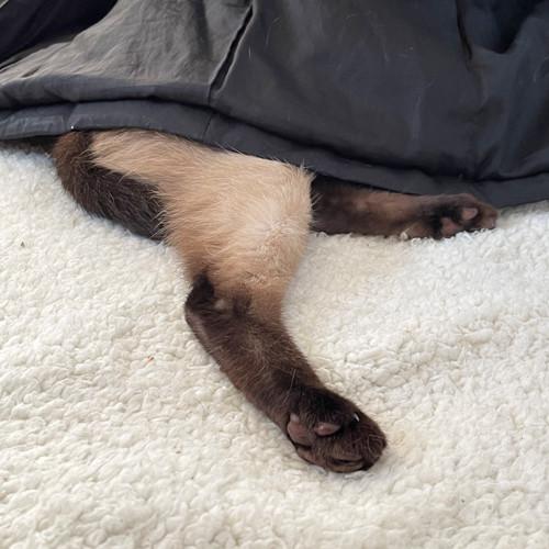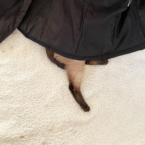 その上に着なくなったダウンコートを掛け毛布代わりに置いておくと。