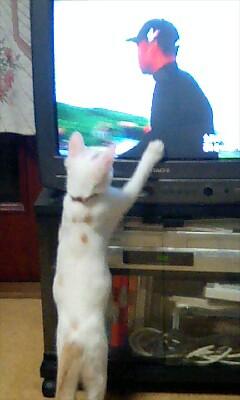 テレビに反応する猫初めて見るわあ~♪