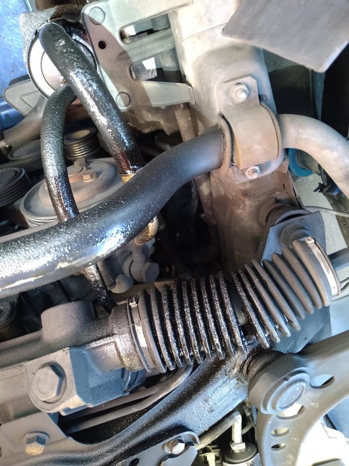 パワーステアリングオイルの漏れとブーツの破断、、、絶対に車検通らず、、、