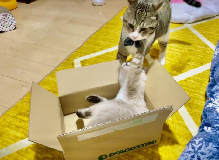 キャットランナーを購入してにゃん子達が楽しんでくれればと思ったけど、イマイチだったみたいです💦 組立途中アンが上から「何やってるんだ?」と ボーは近くで見守って ...