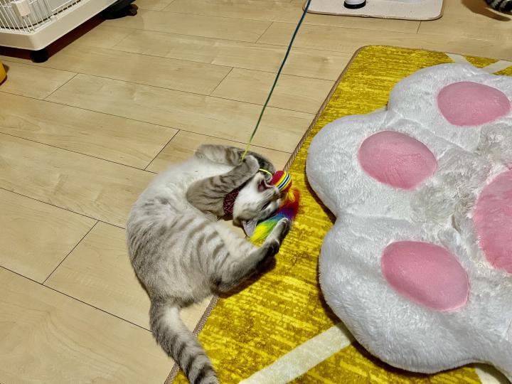ベルの猫じゃらしの食らいつきがハンパない💦