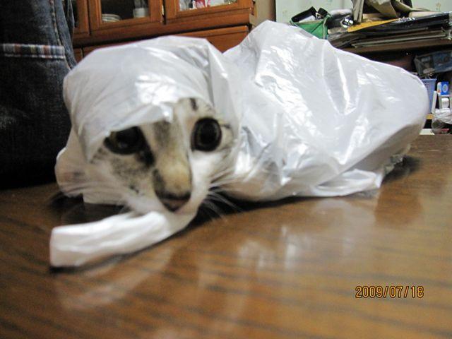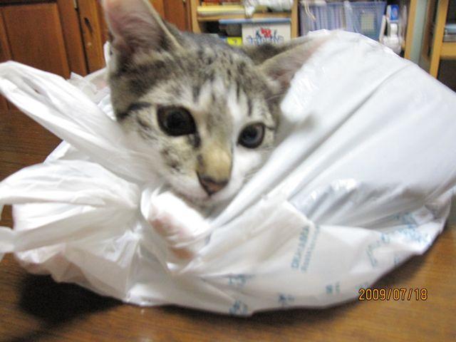 袋に入るのでちょっとだけ袋を閉めると無理にでも顔を出そうとした結果… 写真のようになっちゃいました(。・ω・。)