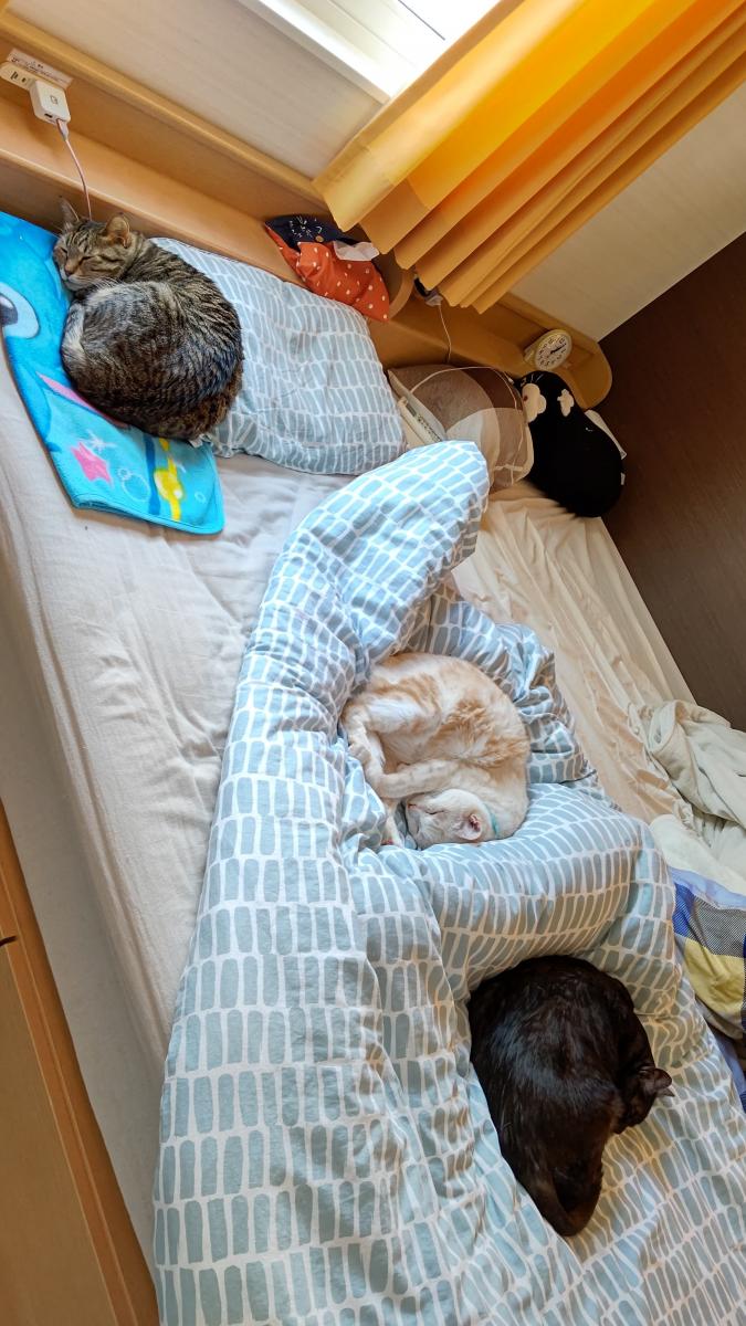 今日は同じく私を探してたしろうも来て、その後リビングに取り残されたのんちゃんが寂しくなって同じ場所に来た…という流れだと思われます笑