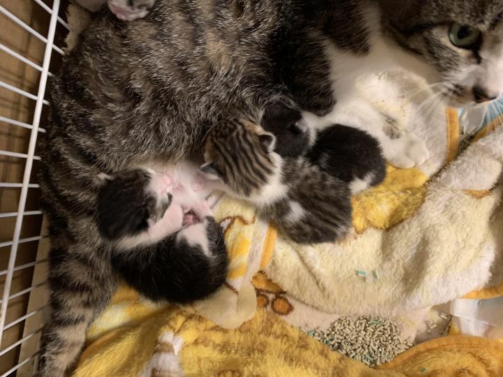 一回目は去年の夏頃でしたが、その時も後2週間後かなとか言われてましたが、2日後とかにすぐ産みました。5匹。無事、みんな里親を見つけることができました。