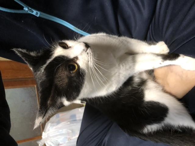 膝上でグルーミング中。