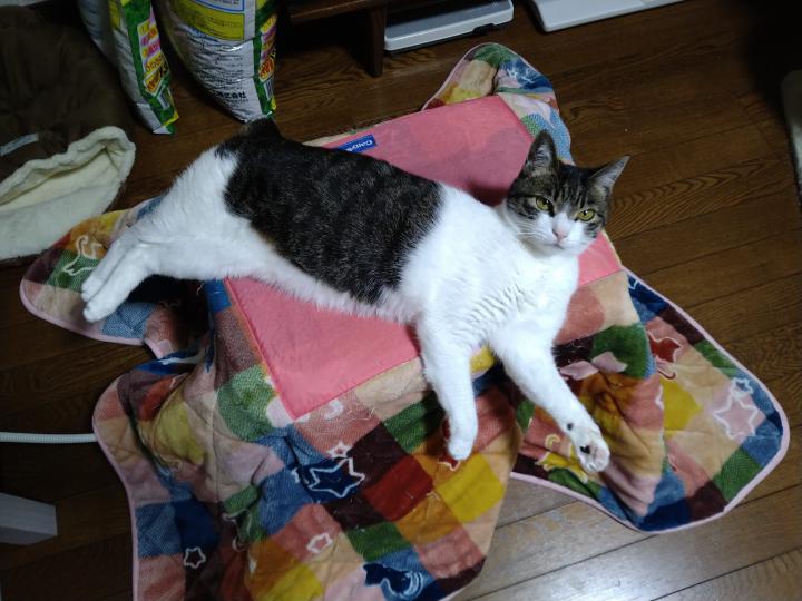 微妙に未だ仕舞いこみの出来ないニャンコたつの上で・・・