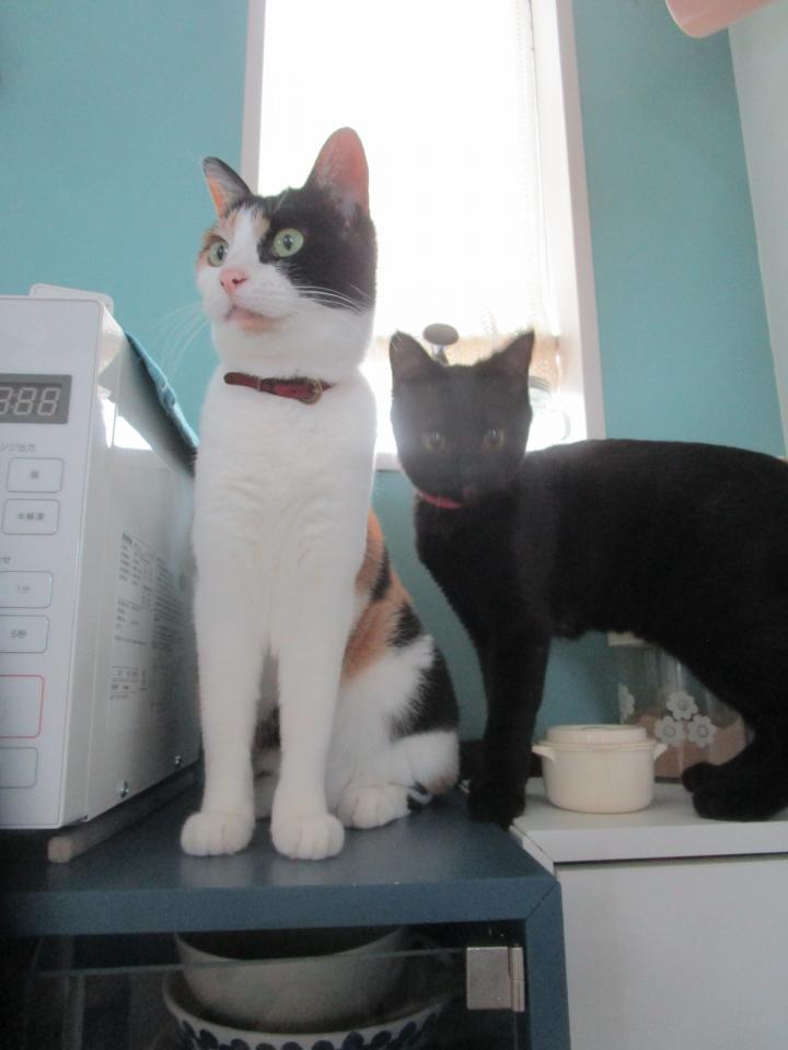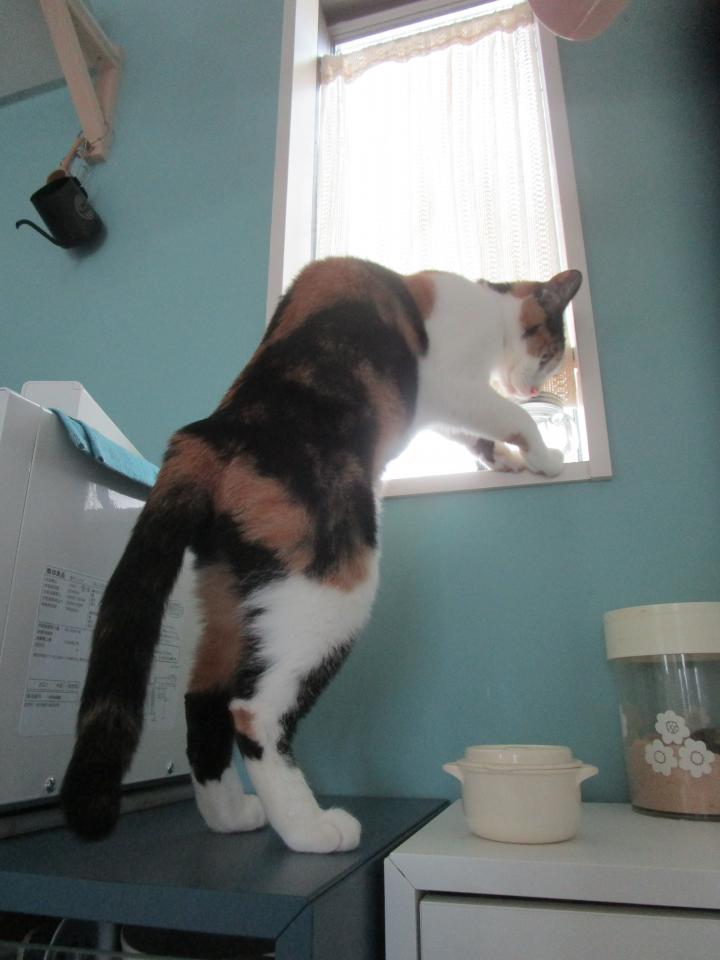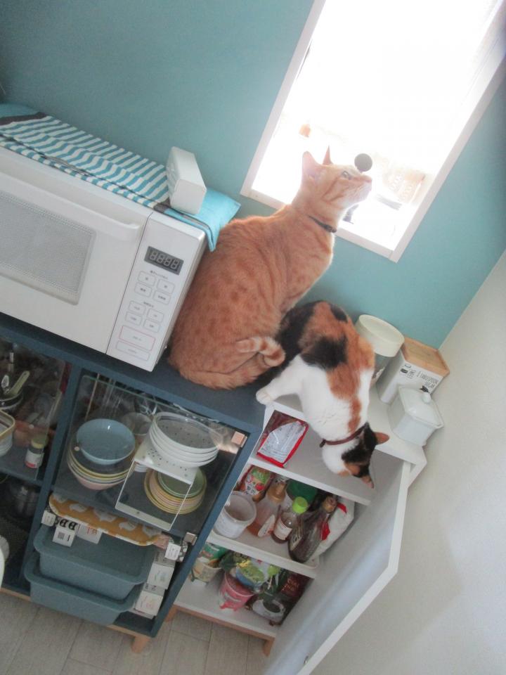 キッチンワゴンに登って・潜ってゴソゴソ。