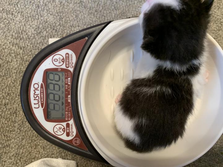 まずは、私のお気にいり、1番小さい、顔のほくろが可愛いふゆちゃん。前回の体重も記載してます。