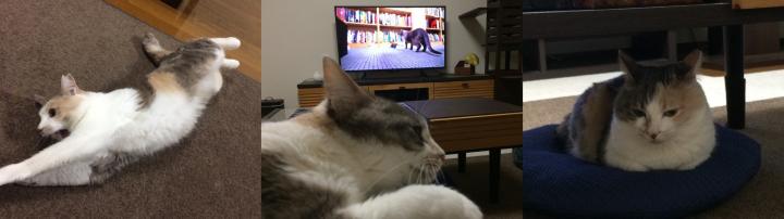 トンネルから窺ったり、テレビを観ずにまったりしたり。