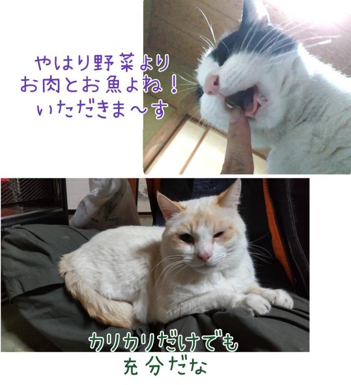 ネコは肉食なハズでも 今日も野菜かじり付くよ