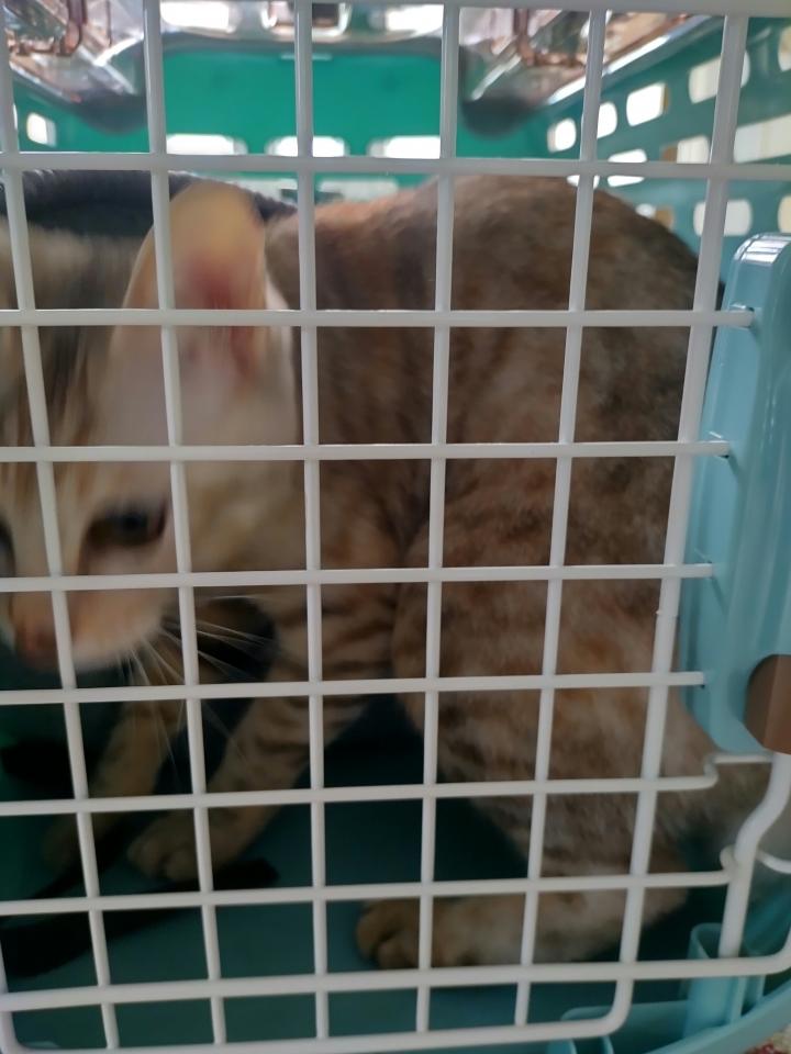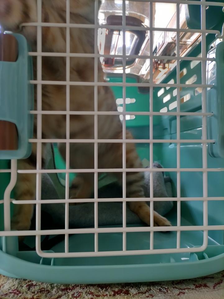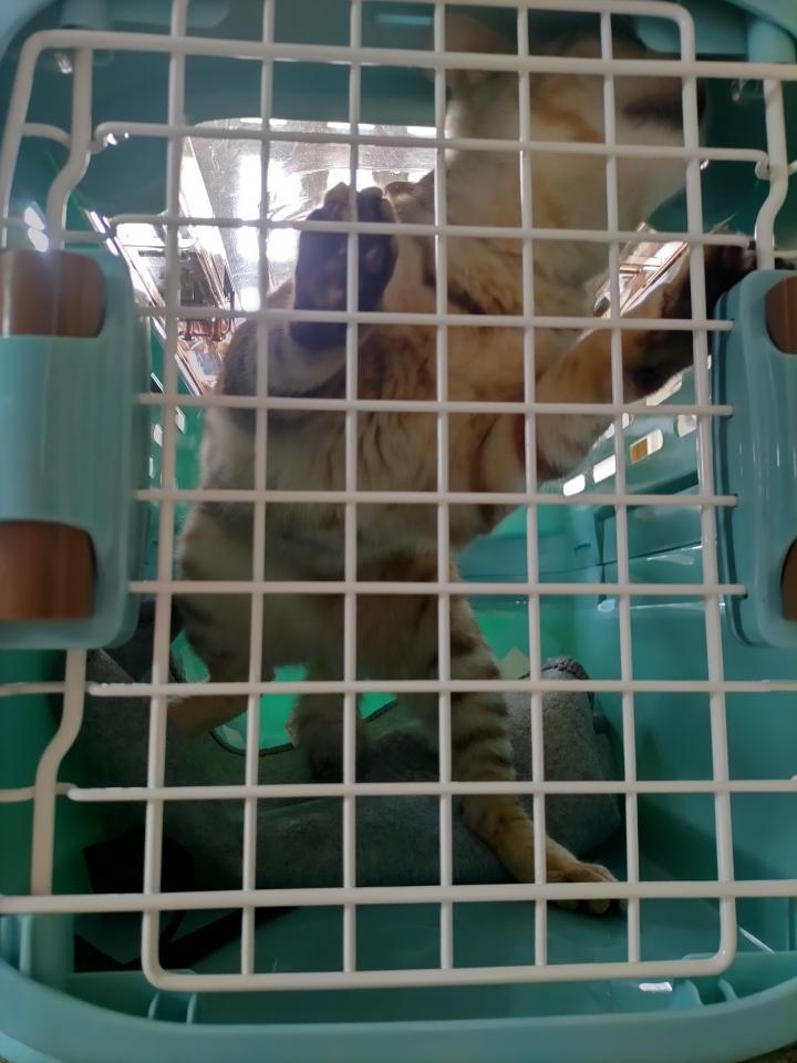 連れてきた日に初めてケージに入って車で外出し、今までのパパやママとお別れし、知らない人に連れて行かれ、病院に行ってチクチクされて、紬ちゃんにとって、ケージは怖いものなんですね。